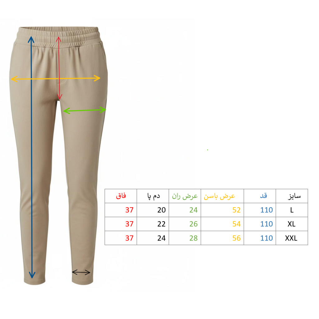کمر شلوار کاملاً کشی طراحی شده که باعث میشود نگرانی از بابت سایزبندی نداشته باشید و شلوار بهراحتی روی بدن فیت شود. کیفیت پارچه و اجرای دوخت توسط تیم فنی نراتزوری بررسی و تأیید شده تا محصولی بادوام و قابل اعتماد در اختیار شما قرار بگیرد.